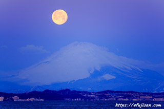 | 1月25日 6時44分 千葉県安房郡鋸南町 NIKON D800E 80-400mm(210㎜域使用) F22 1/4 ISO100 東京から遠路はるばる房総半島へ撮影に向かった。ビーナスベルトが綺麗になる頃満月はいよいよ富士山頂へ沈もうとするところでした。 |